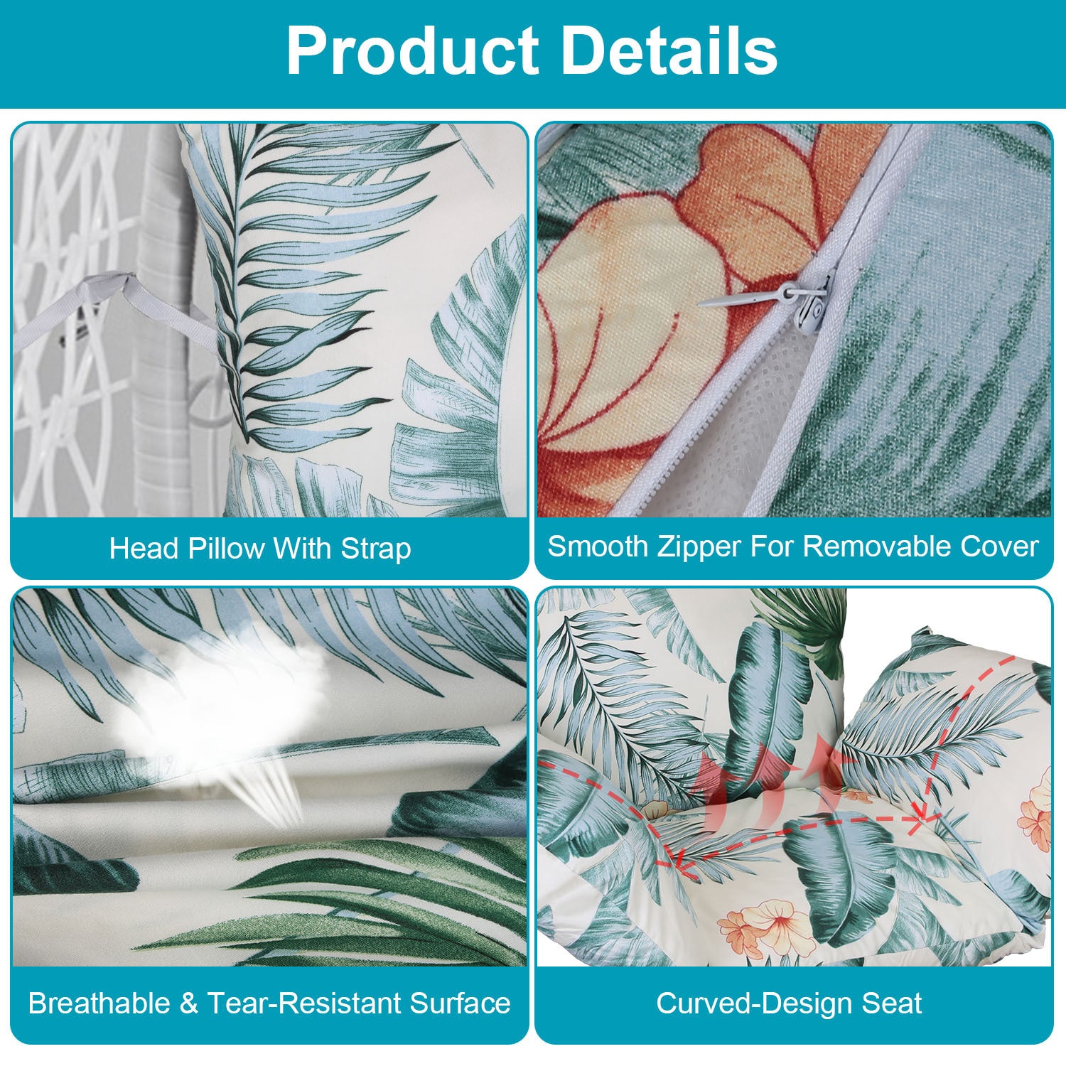 - *Considerate Design*: Straps are deigned on the head pillow,allowing you to fix it on the position and bringing you comfortable leisure time. And the outside cover is breathable and tear-resistant. Besides,it can be easily folded for easy storage when not in use.